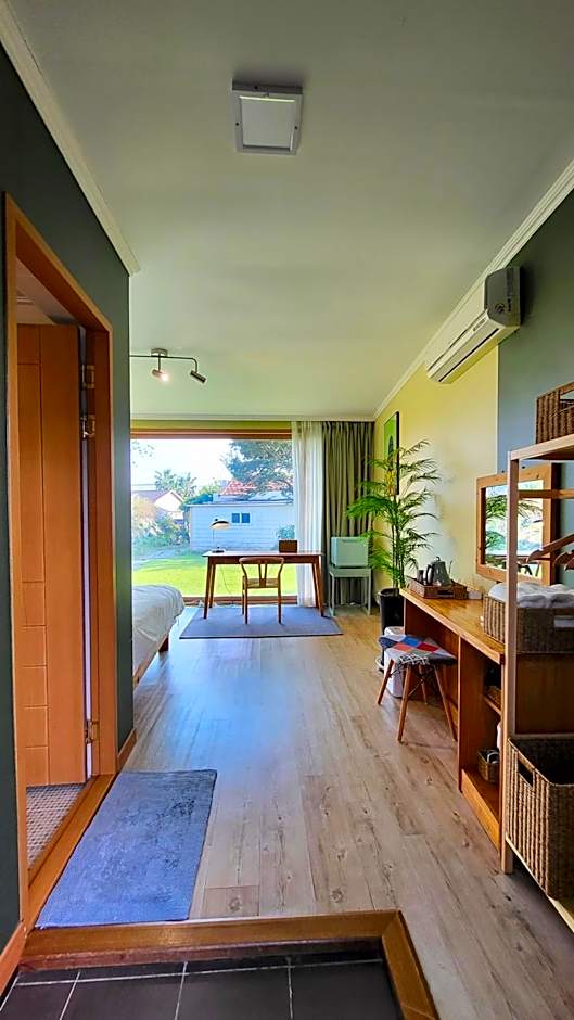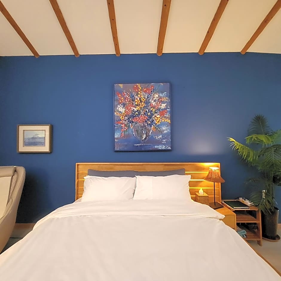 Featuring ocean views through a panoramic window, this quiet and cozy room is finished with wooden flooring and clay walls. Private bathroom is fitted with a shower.